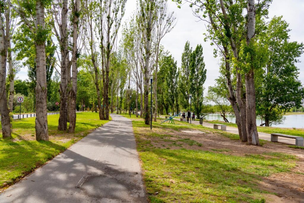 El nuevo tramo del Limay une a todo el paseo con bicisenda y veredón peatonal, además suma mobiliario que permite el descanso y miradores, cestos de residuos y cartelería para la convivencia entre peatones y ciclistas.