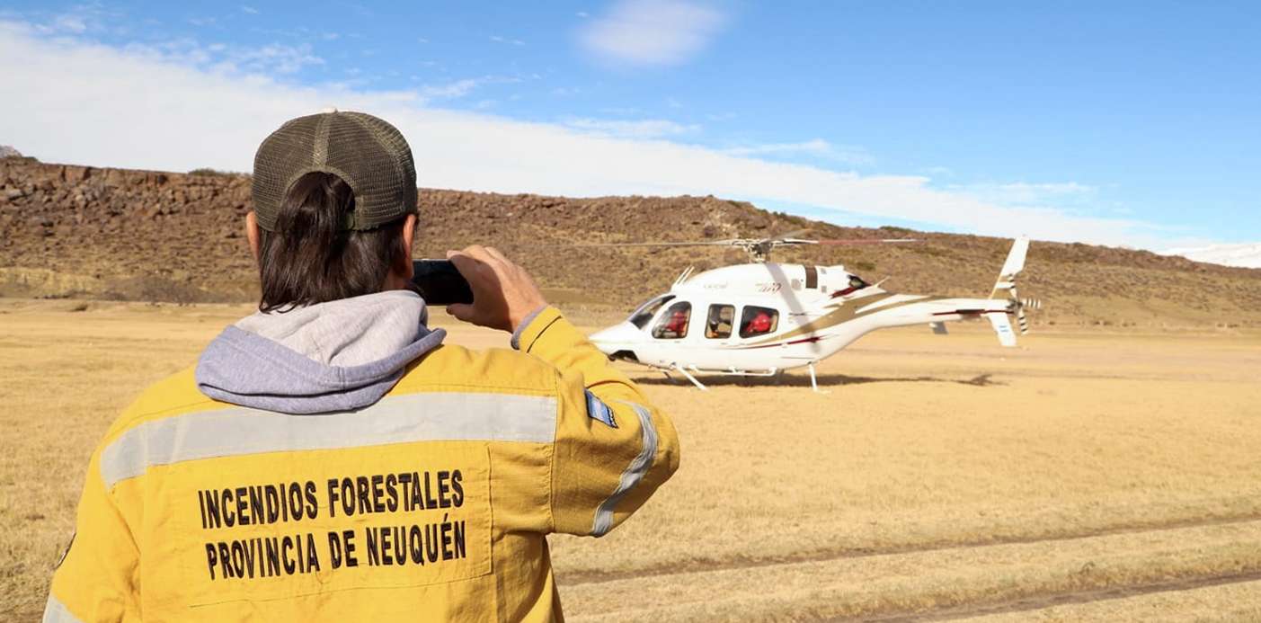 Al referirse al equipamiento, el funcionario detalló : «La provincia tiene dos helicópteros que, en caso de una emergencia, se comunicarán al aeropuerto de Neuquén y serán dirigidos al área del siniestro».