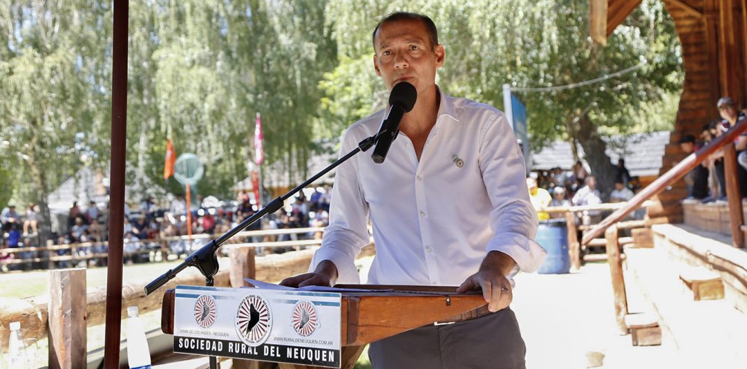 Gutiérrez encabezó el acto acompañado por el vicegobernador Marcos Koopmann; el exgobernador Jorge Sapag; el presidente de la Sociedad Rural Argentina (SRA), Nicolás Pino y el titular de la SRN, Diego García Rambeau.
