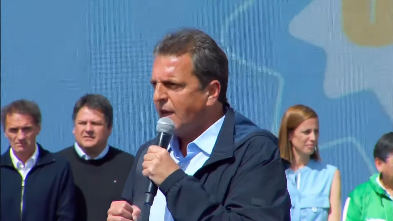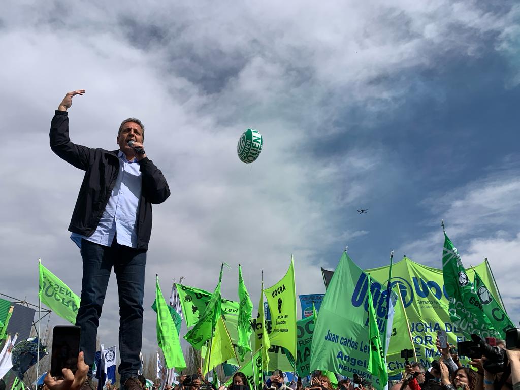 Sergio Massa tuvo un gran acto multutudinario con gremios en Neuquén donde estuvo el intendente Mariano Gaido.