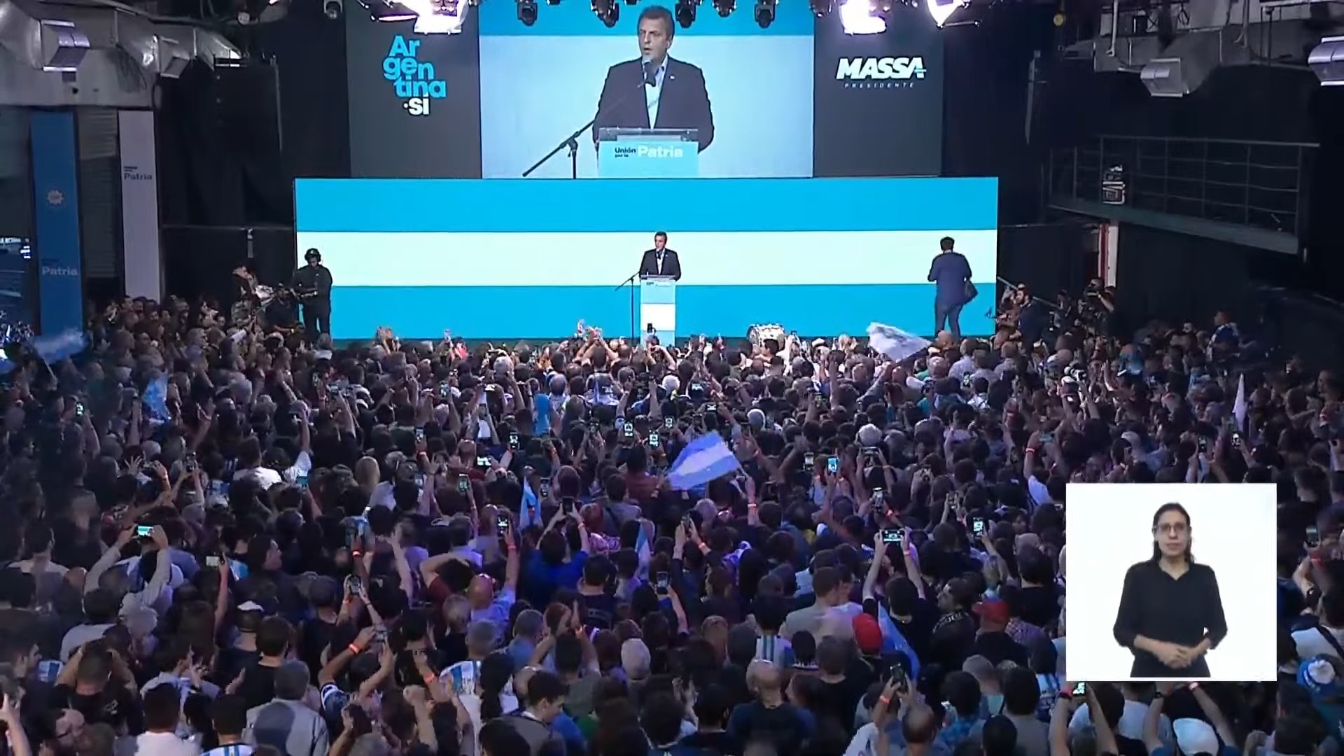 Política VIVO: Habla Sergio Massa El candidato más votado habla desde el búnker de Unión por la Patria. Publicado 2 años atrás en octubre 22, 2023 Por Redacción Sergio Massa brinda su discurso tras el cierre de una emocionante jornada electoral, que lo tuvo como principal protagonista. TemasPrincipalSergio Massa Próxima Patricia Bullrich perdió casi 5 puntos y quedó afuera del balotaje Anterior Se dio vuelta: En Río Negro Sergio Massa se impone con más del 37,20 por ciento Continue Reading Te va a interesar Kicillof y Massa se reunieron en La Plata: unidad y frente amplio para enfrentar a Milei La política despidió a Juan José Mussi: homenajes por la muerte del histórico intendente Axel Kicillof: «Lo nuevo, la motosierra, era una estafa en TikTok» Cómo serán los cierres de campaña de Milei y Kicillof Trump reafirmó que su ayuda a la Argentina dependerá del triunfo de Milei: la reacción de la política Rossi tuvo que resignar el primer lugar y el peronismo va unido en Santa Fe Clic para comentar Leave a Reply Cancelar la respuestaTu dirección de correo electrónico no será publicada. Los campos obligatorios están marcados con *Comentario * Nombre * Correo electrónico * Web Guarda mi nombre, correo electrónico y web en este navegador para la próxima vez que comente. Δ