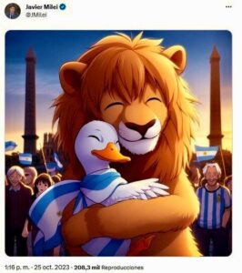 El león abrazando al pato. El posteo de Javier Milei luego del apoyo que tuvo de Patricia Bullrich para el balotaje.
