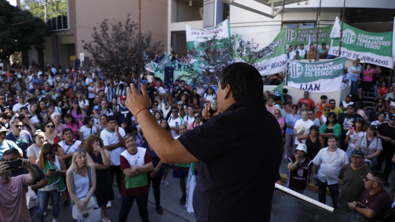 Carlos Quintriqueo, secretario general del gremio estatal dijo que en el edifico de ISSN no había nadie. Pidió que el 6% de suba en los aportes se compensen con la paritaria de febrero.