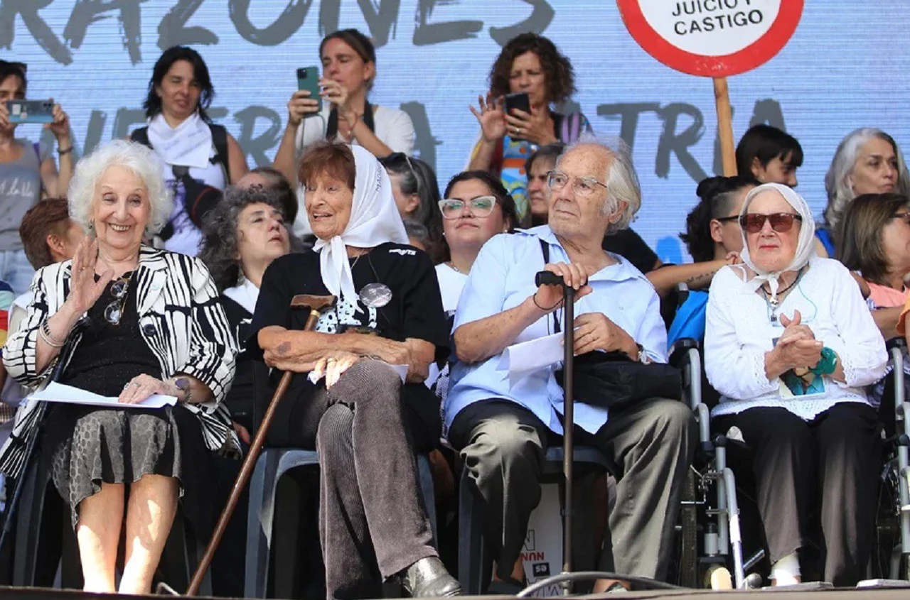 La primera oradora de la tarde fue la titular de Abuelas, Estela de Carlotto, quien aseguró que las «provocaciones» de Milei y la vice Victoria Villarruel violan “todos los pactos internacionales”.