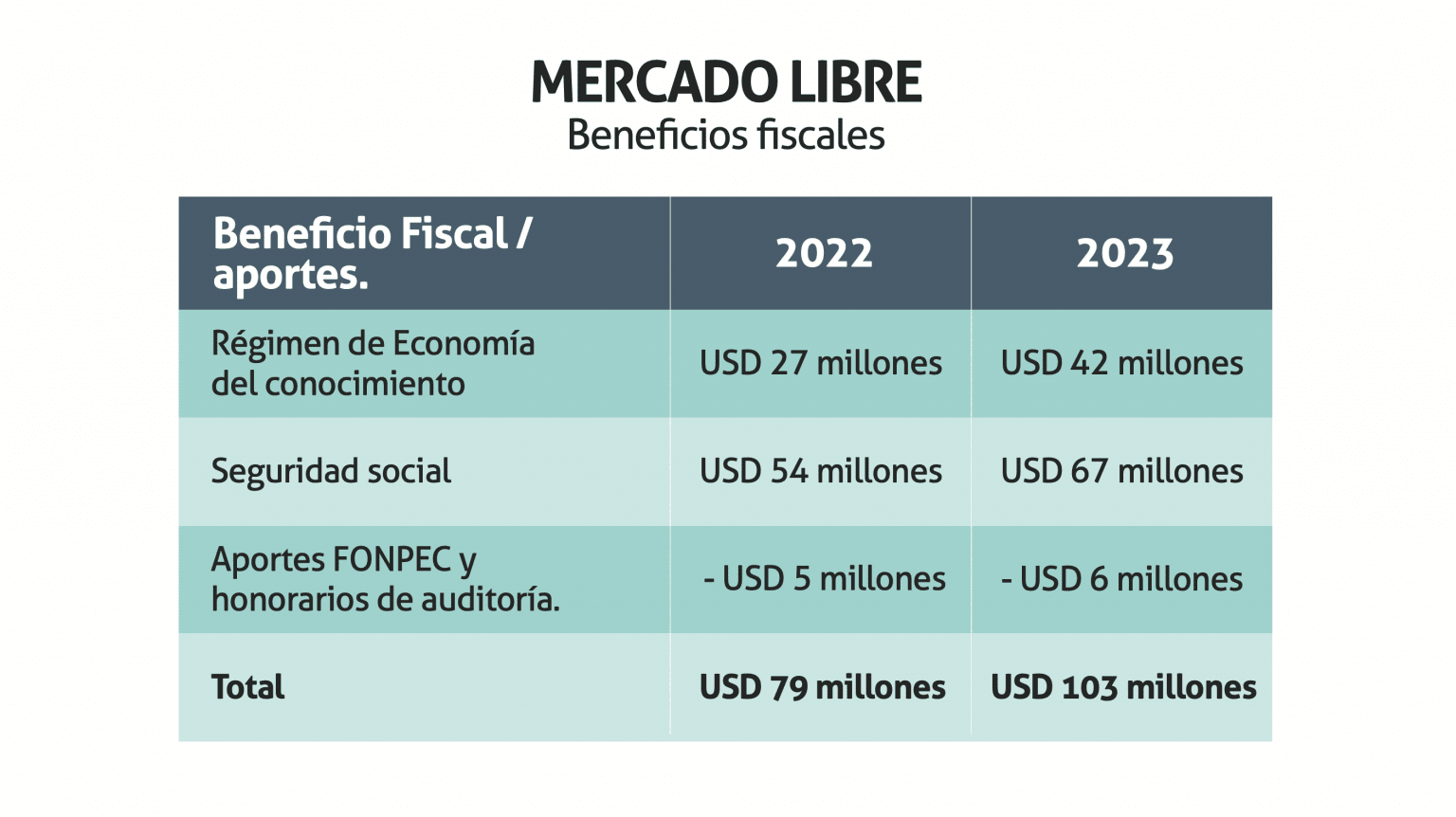 Fíjense, Mercado Libre, beneficios fiscales. ¡De vuelta, nadie silba, nadie silba! Mercado Libre, esto está tomado de la SEC, del mismo lugar que tomé. Bueno, por el régimen de economía del conocimiento en el 2023… Mercado Libre es la empresa más importante de la República Argentina y su titular es el hombre más rico de la República Argentina. Tuvo una exención impositiva por economía del conocimiento de 42 millones en Seguridad Social, que son los aportes para financiar a los jubilados de 67 millones y un descuento de 6. Bueno, 103 millones de dólares, con esos 103 millones de dólares nos sobra para cubrir todos los gastos de funcionamiento de todas las universidades argentinas y de los hospitales. Para los que digan. Fijate, por favor, el 10 y termino. Con esto termino.