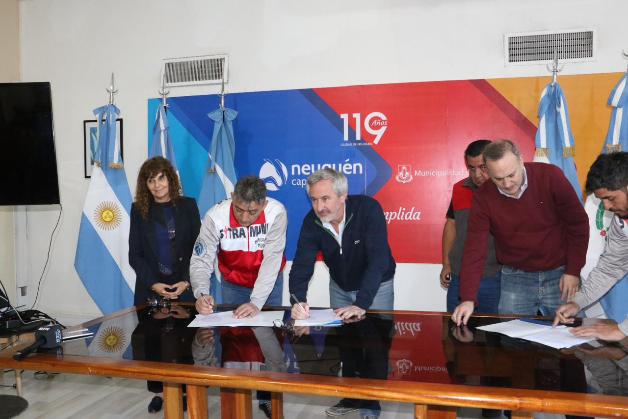 La Municipalidad de Neuquén y el gremio Sitramune suscribieron esta mañana el acta acuerdo que contempla una actualización salarial desde abril de este año hasta marzo de 2025. Además, se pasarán a planta permanente a 80 trabajadores.