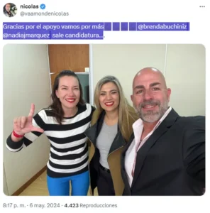 “Gracias por el apoyo vamos por más. Sale candidatura”, publicó en su cuenta de X donde mostró la imagen con las dos dirigentes partidarias, que llevó a Milei a la Casa Rosada.
