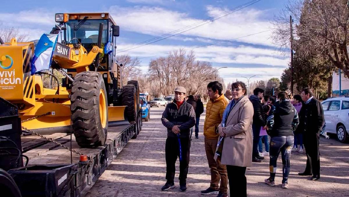 Picún Leufú recibió con bombos y platillos su primera máquinaria 0KM para el arreglo de calles rurales.