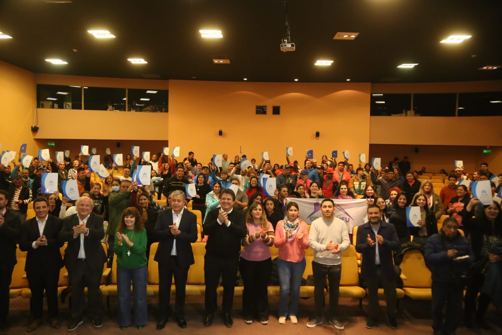 En un acto efectuado en el auditorio del Museo Nacional de Bellas Artes, Gaido aseguró sentir “mucha felicidad por poder realizar la entrega de 100 adjudicaciones más, de un total de 367 familias neuquinas que conformarán el nuevo barrio que se va a inaugurar el miércoles 18 de septiembre”.