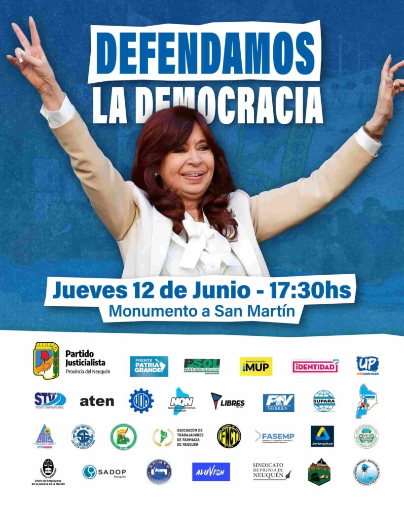 Partidos, sindicatos y movimientos sociales se movilizan hoy en Neuquén contra la condena a Cristina