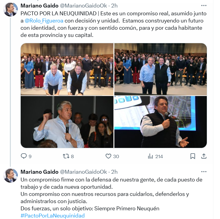 Y detrás de ese concepto, el proyecto político que ambos lideran -Neuquinizate y Primero Neuquén- buscará dar el salto a nivel nacional, con el Pacto por la Neuquinidad.