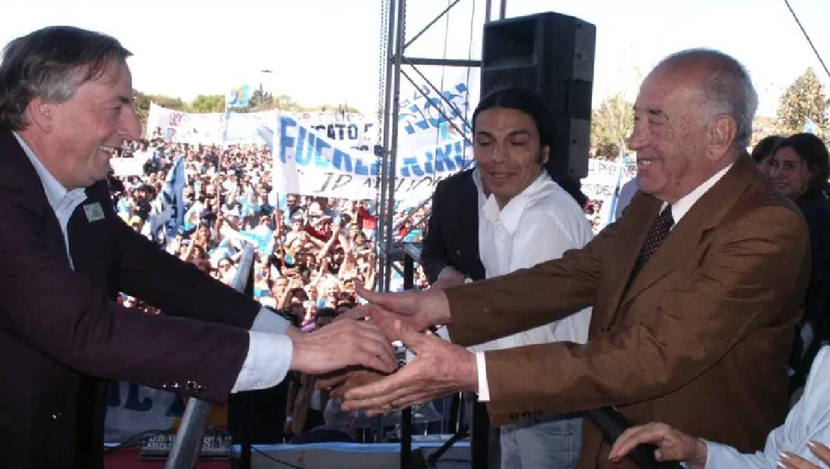 Felipe Sapag junto a Néstor Kirchner en 2005 en una visita a la provincia de Neuquén