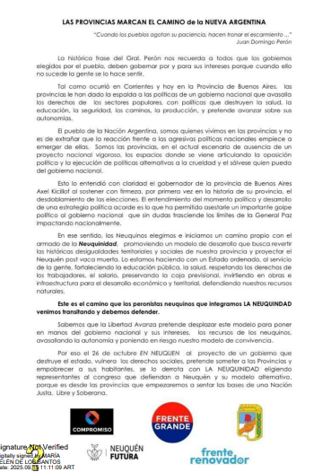 Todo comenzó con un texto titulado “Las provincias marcan el camino de la nueva Argentina”, difundido el 7 de septiembre tras la victoria de Axel Kicillof en la provincia de Buenos Aires. Es sabido que hay peronista del gobierno provincial que quisieron aprovechar ese envión, y se subieron a la victoria.