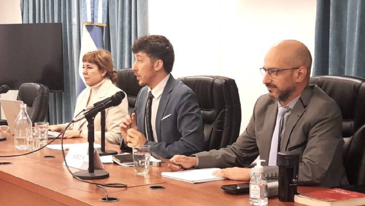 Los jueces Marco Lupica Cristo, Juan Pablo Encina y la jueza Carolina García del Tribunal de Revisión sobre el caso Gloria Ruiz.