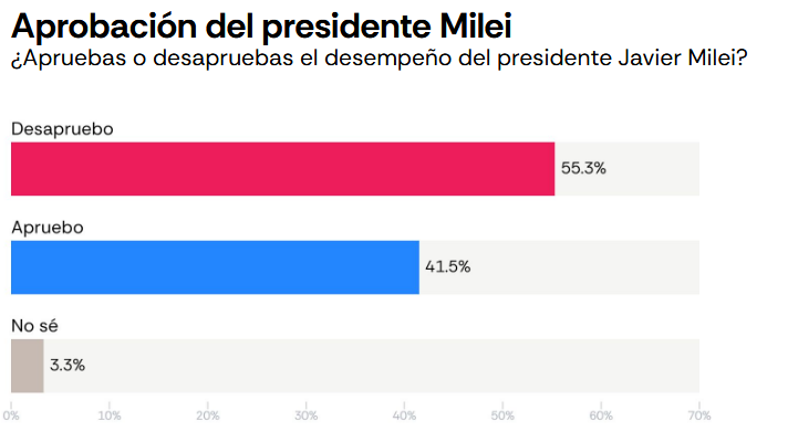 La desaprobación al desempeño de Javier Milei ya supera el 55 por ciento.