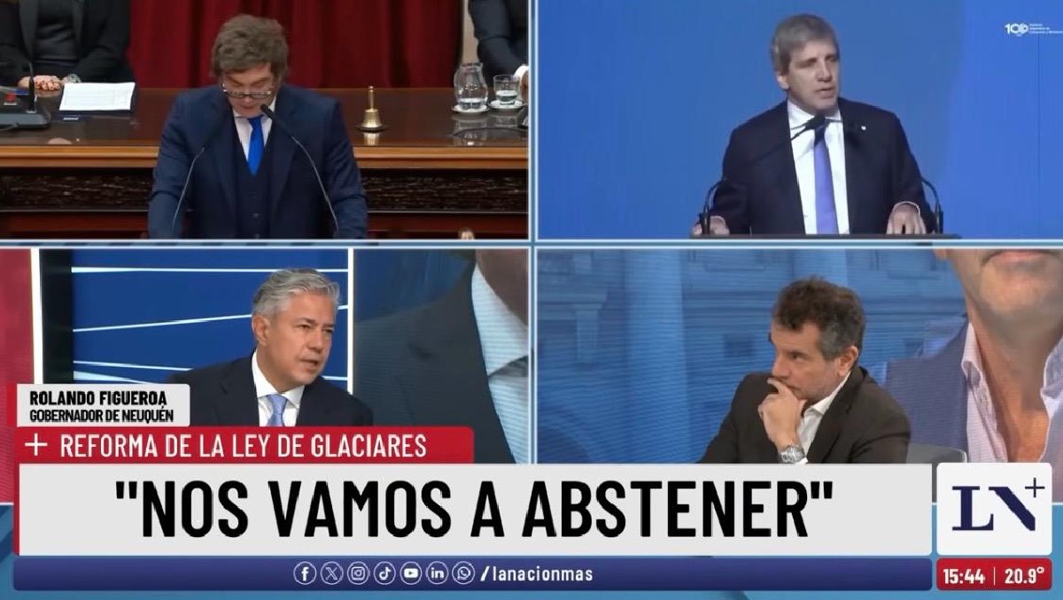 El gobernador de Neuquén, Rolando Figueroa, eligió un camino intermedio frente a la reforma de la Ley de Glaciares que se debate en el Congreso Nacional: no confrontar, no apoyar y directamente abstenerse.